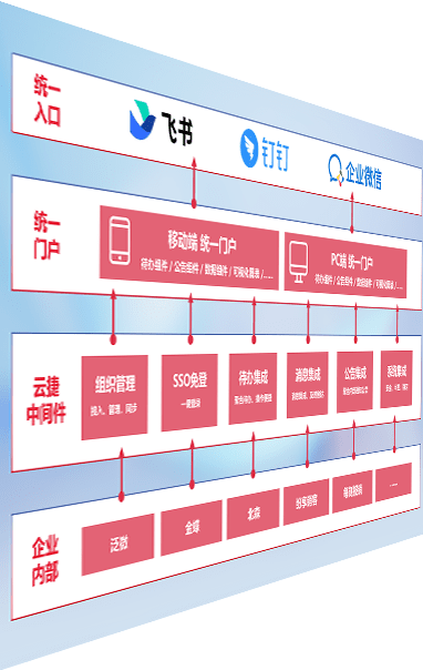 对协作平台提供支持服务,,支持企业应用与协作平台对接,,包含组织同步、、、、消息集成、、、待办集成等。。支持目前主流的协作平台:钉钉、、、、企微和飞书。。。。